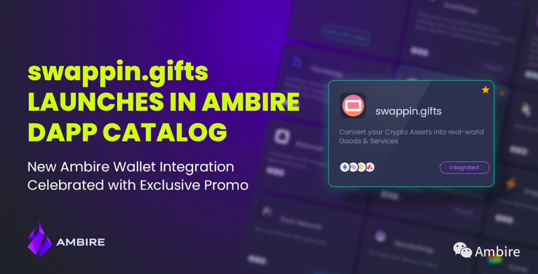 Ambire在其dApp列表中新增了swappin.gifts,一款允许用户使用加密货币购买礼品卡的应用。为了庆祝这一集成,正在进行为期两周的促销活动,提供价值1000美元的BNB作为奖品。
