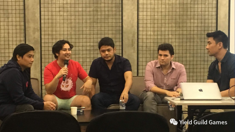 2018 年,菲律宾:Jihoz 与(从左到右)Raf Padilla 律师、YGG 联合创始人 Gabby Dizon、Loom Network 的 Matthew Campbell 和 Peter Ing 在 BlockchainSpace 的活动中发表了圆桌演讲