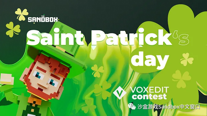 这是一个面向设计师的VoxEdit大赛,主题围绕圣帕特里克节,参与者可赢取SAND奖励。比赛分为常规组和初学者组,有明确的提交规则和时间表。作品需体现节日元素如绿色、金色、彩虹和香樟树,且必须是原创,使用VoxEdit软件创作。