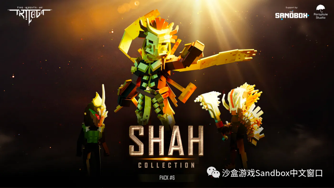 《SHAH》是Triloga的探险之旅第六个NFT系列,现已登陆TheSandbox市场。该系列描绘了继承古老力量的战士,包括独特装备如纳凯的盔甲、卡尔基的武器和Kimpura战士的装备,展现了丰富的创意与文化融合。