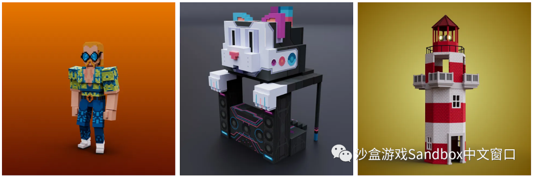 酷酷的 80 年代夏季模特(左);机器猫 DJ 台(中);海上灯塔(右)