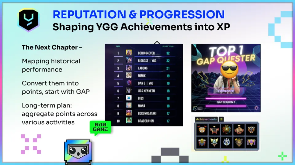 YGG的GAP计划引入了声誉与进步(RAP),通过成就转化为XP,个人资料等级和锻造机制,实现公会成员贡献的量化。这将创建一个全面的web3声誉系统,提升社区参与和价值保留。