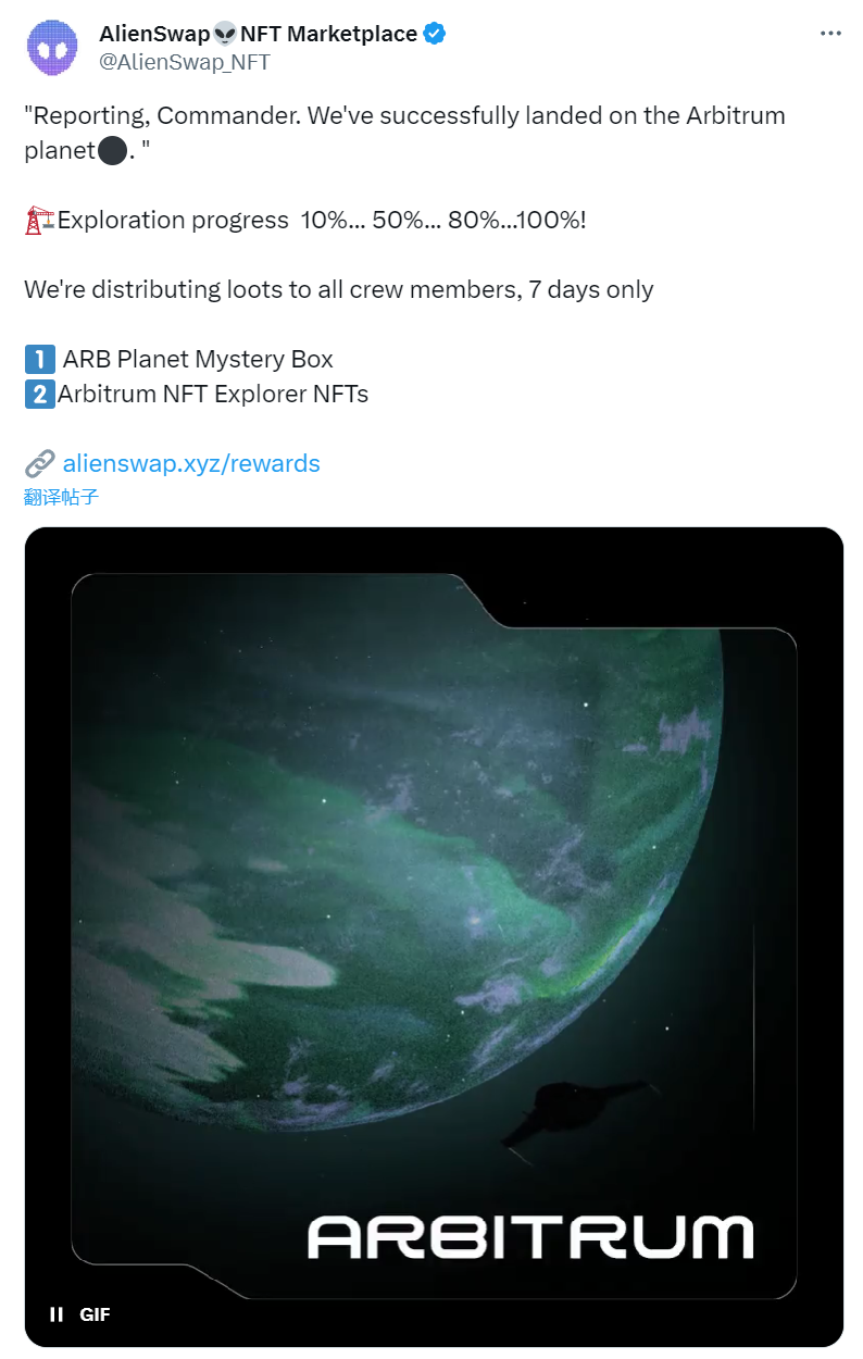 AlienSwap已支持Arbitrum主网,并推出积分盲盒和Arbitrum NFT Explorer系列NFT