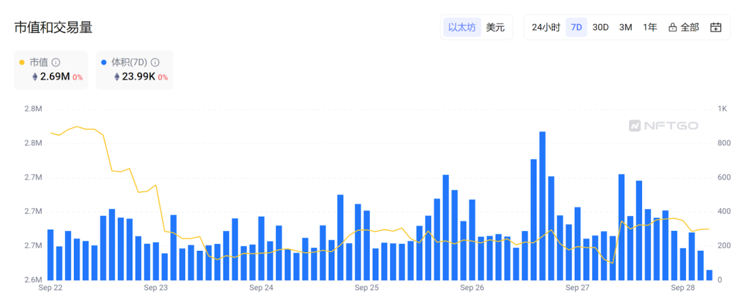NFTGo数据显示,近24小时以太坊NFT市场买家地址数量为4,506个,卖家地址数量为4,250个。近30天盈利地址数量为34,419个,亏损地址数量为4,250个。此外,当前以太坊NFT市场情绪指数为8,等级为“Cool”。注:NFT市场情绪指数是根据波动率、交易量、社交媒体和谷歌趋势计算得出。