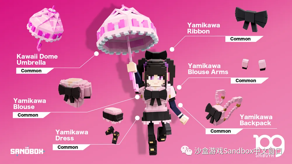 探索元宇宙中 SHIBUYA109 的世界,穿上可爱的时尚单品,与朋友一起享受体验!该系列于 9 月 26 日星期二 18:00(北京时间)开始在 The Sandbox 商店页面上购买。