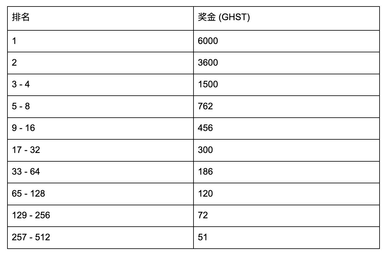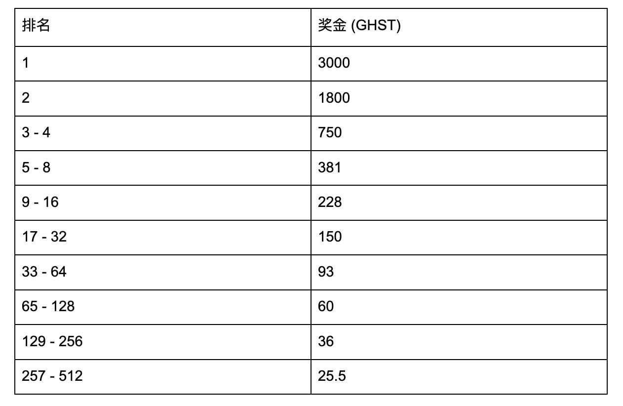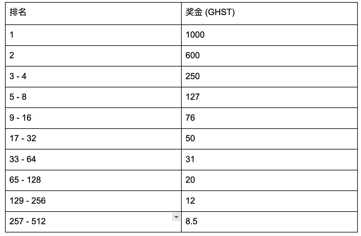50,000 GHST 锦标赛奖励分配