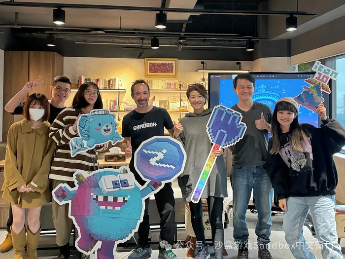 The Sandbox 的联合创始人兼首席运营官 Sebastien Borget 早期访问了艾肯娛樂的总部,并与总裁 Fiona Hsiung 和制作团队会面。