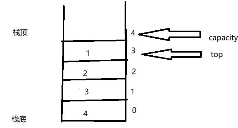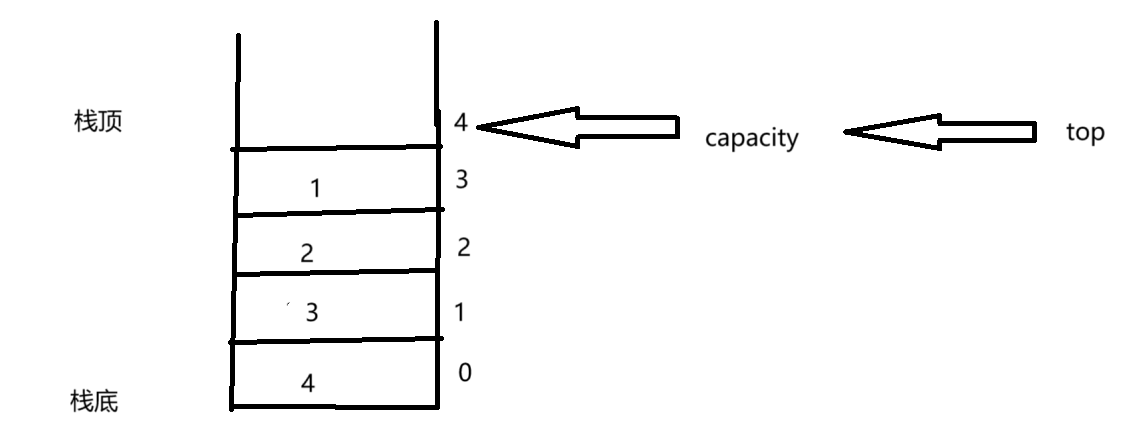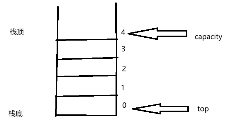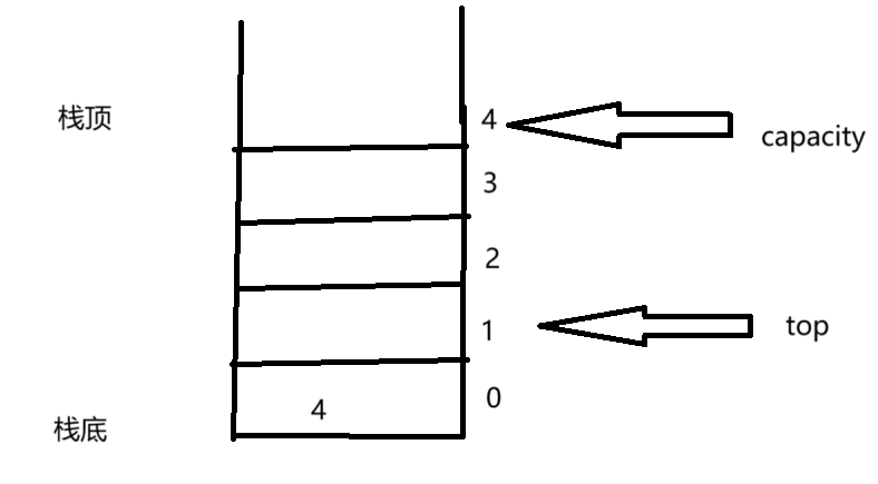 栈可以存储任何类型的数据,所以我们使用关键字typedef重命名,选择top来表示栈顶的元素,capcity来表示栈的容量。