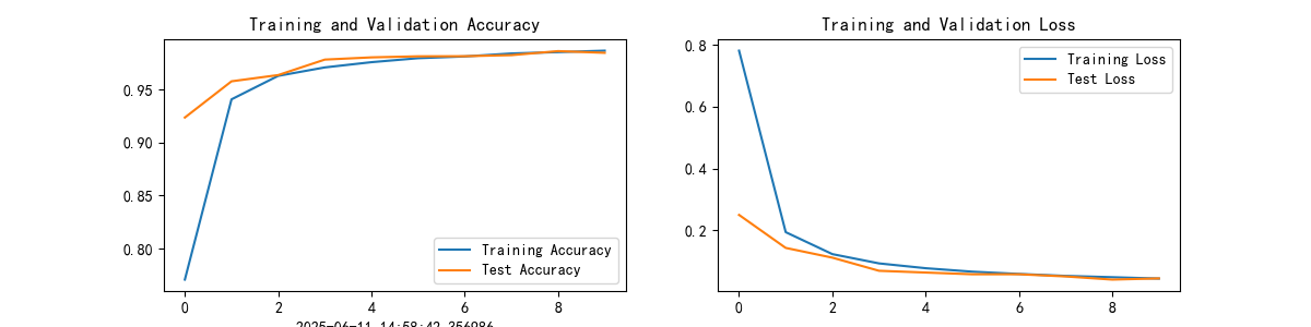Epoch:10, Train_acc:98.7%, Train_loss:0.045, Test_acc:98.5%,Test_loss:0.045