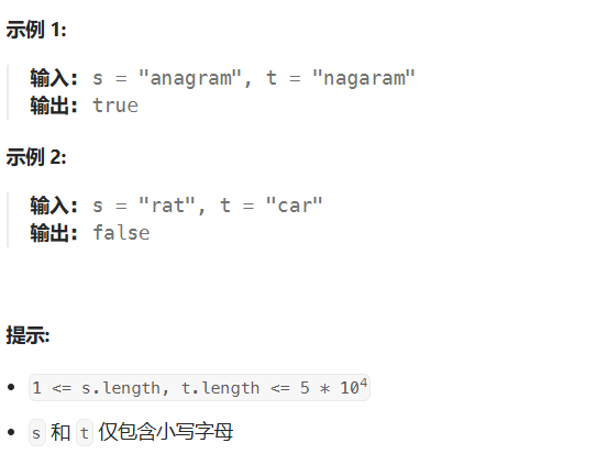 题目:给定两个字符串 s 和 t ,编写一个函数来判断 t 是否是 s 的 字母异位词。