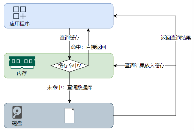缓存优化是一个性价比很高的优化手段,多数情况下,缓存优化可以通过一些简单的操作,换来性能的大幅提升。缓存优化的核心思想就是将一些原本保存在磁盘(例如MySQL)中的、经常访问并且查询开销比较大的数据,临时保存到内存(例如Redis)中。后序再访问相同数据时,就可直接从内存中获取结果,而无需再访问磁盘,由于内存的读写速度远高于磁盘,因此就能极大的提高程序的性能。