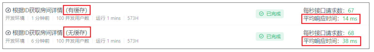 结果很显然,有缓存的响应时间比无缓存的响应时间要少。