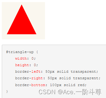 原理:宽度width为0;height为0;(1)有一条横竖边(上下左右)的设置为border-方向:长度 solid red,这个画的就是底部的直线。其他边使用border-方向:长度 solid transparent。(2)有两个横竖边(上下左右)的设置,若斜边是在三角形的右边,这时候设置top或bottom的直线,和右边的斜线。若斜边是在三角形的左边,这时候设置top或bottom的直线,和左边的斜线。
