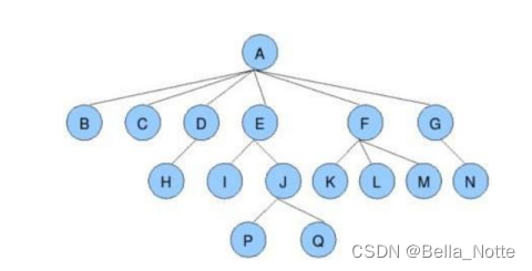 - 非终端节点或分支节点:度不为0的节点; 如上图:D、E、F、G...等节点为分支节点
