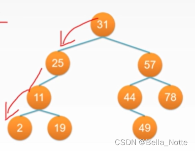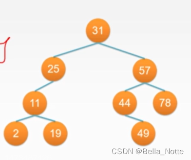 给定一个序列{31,25,57,11,44,78,2,49,19},将其依次插入一棵二叉查找树