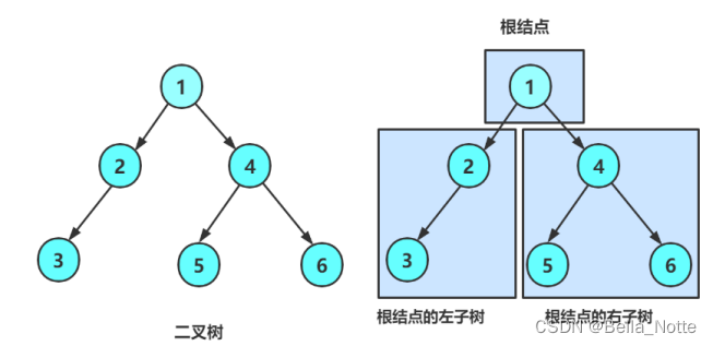 2. 由一个根节点加上两棵别称为左子树和右子树的二叉树组成