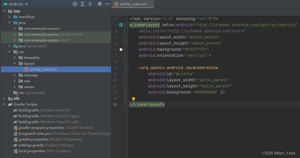 该文介绍了在Android应用中处理相机权限的方法,包括静态配置uses-permission和uses-feature标签,以及使用RxPermissions进行动态权限管理。同时,文章提及了OpenCV用于人脸识别的lbpcascade_frontalface.xml模型文件的使用,并展示了包含JavaCameraView的XML布局代码。