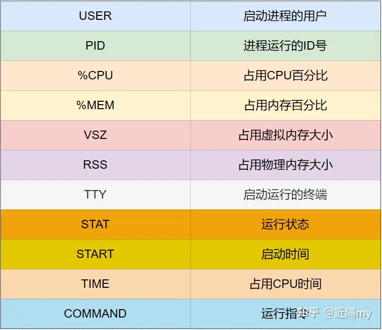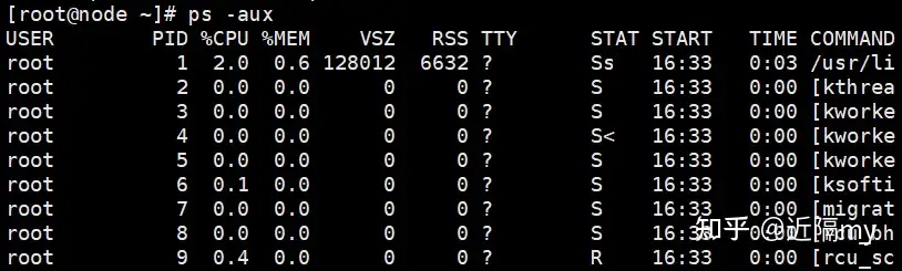 其中:TTY中?代表内核程序;COMMAND中有[]代表内核态进程,无[]代表用户态进程