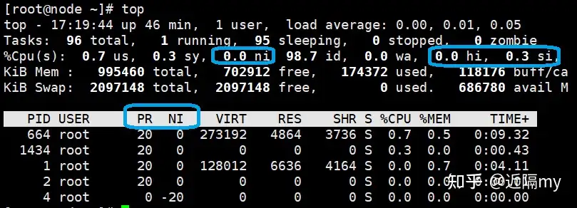 PR(优先级):显示nice值,-20映射到0,+19映射到39