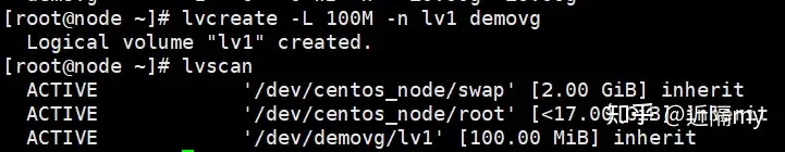 lvcreate -L分配大小,-n指定名称,分配逻辑卷,检查状态