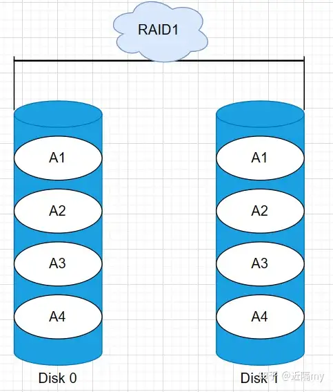 存储利用率仅 50%(两块盘只能用一块的容量)。