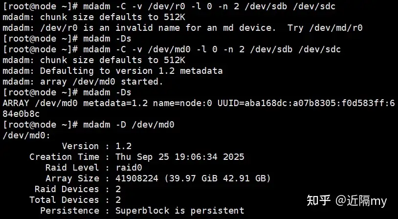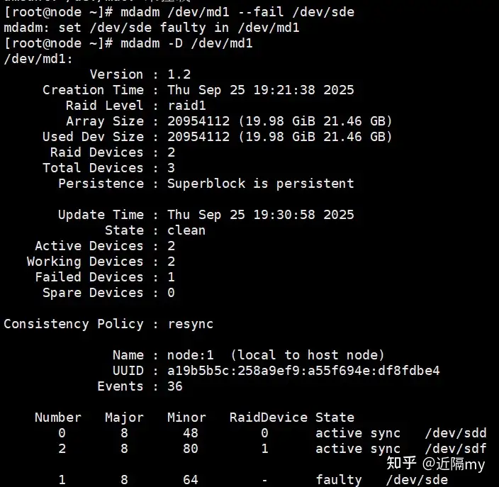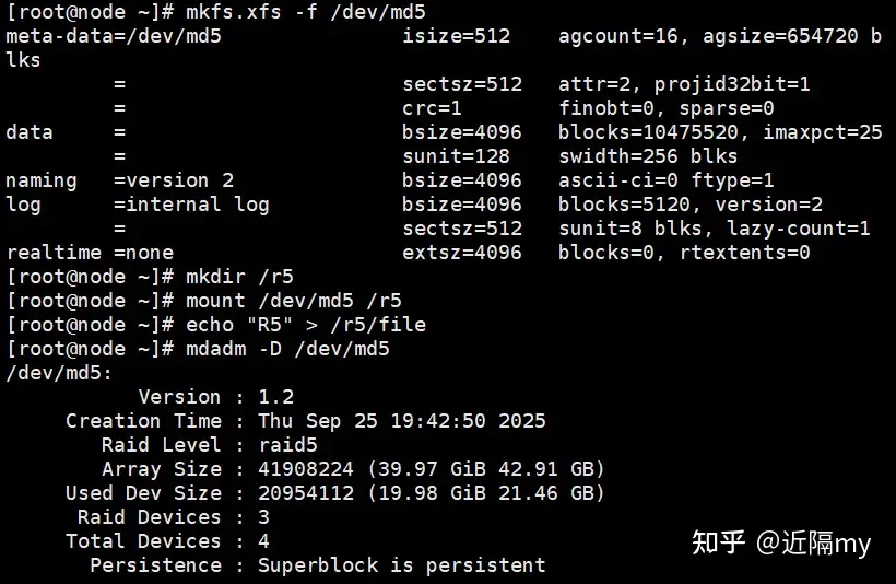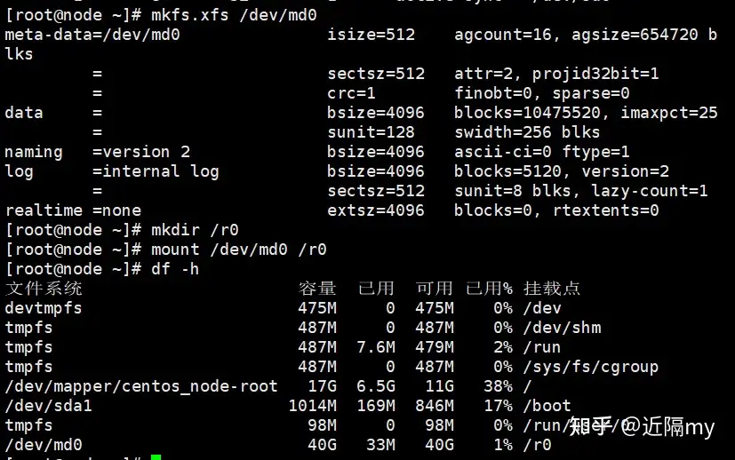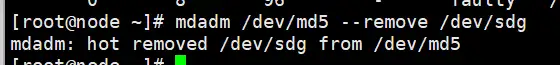 [root@node ~]# umount /dev/md1 [root@node ~]# mdadm --stop /dev/md1 [root@node ~]# mdadm --zero-superblock /dev/sdd [root@node ~]# mdadm --zero-superblock /dev/sde [root@node ~]# mdadm --zero-superblock /dev/sdf