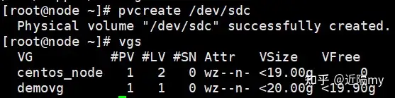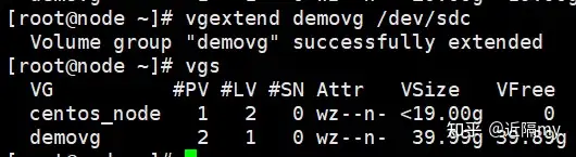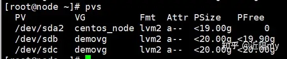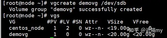 创建名为demovg的卷组,将物理卷加入卷组,检查状态