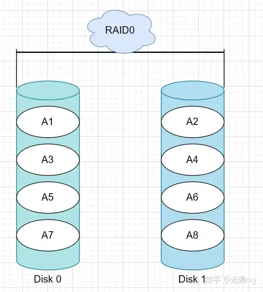 1.1.1原理:数据被分割成块,并并行写入多个磁盘。