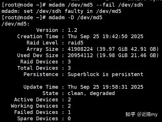 如果这两块盘都正常,且 RAID 5 未发生第二次故障:阵列可能仍处于 降级(Degraded)状态,系统还能读写数据,但 没有冗余保护。