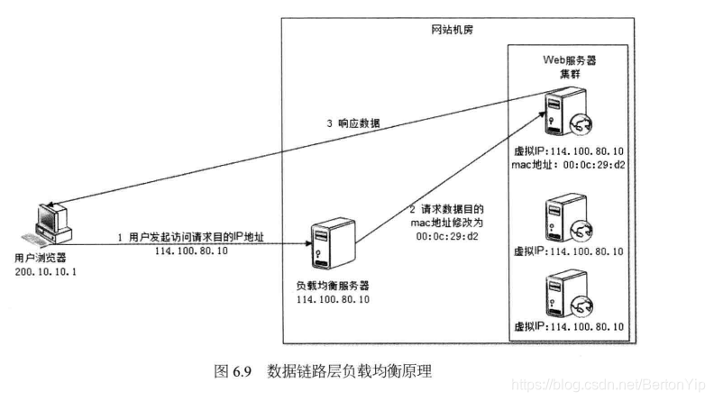 这种数据传输方式又被称为三角传输模式,负载均衡的过程中不修改IP地址,只修改目的的mac地址,通过配置物理应用服务器集群的所有服务器的虚拟IP与负载均衡服务器的IP一致,使得返回时不需要经过负载均衡服务器的IP转换,可将数据包直接返回给用户浏览器,而不需要通过负载均衡服务器,避免网卡带宽成为瓶颈,这种负载均衡方式又叫“直接路由(DR)方式”。