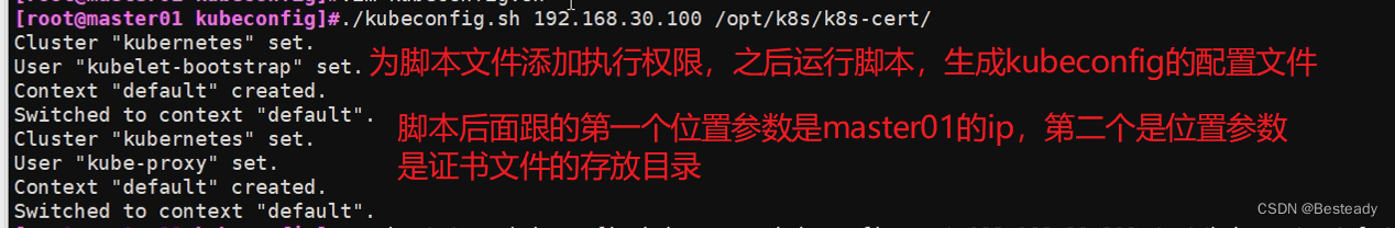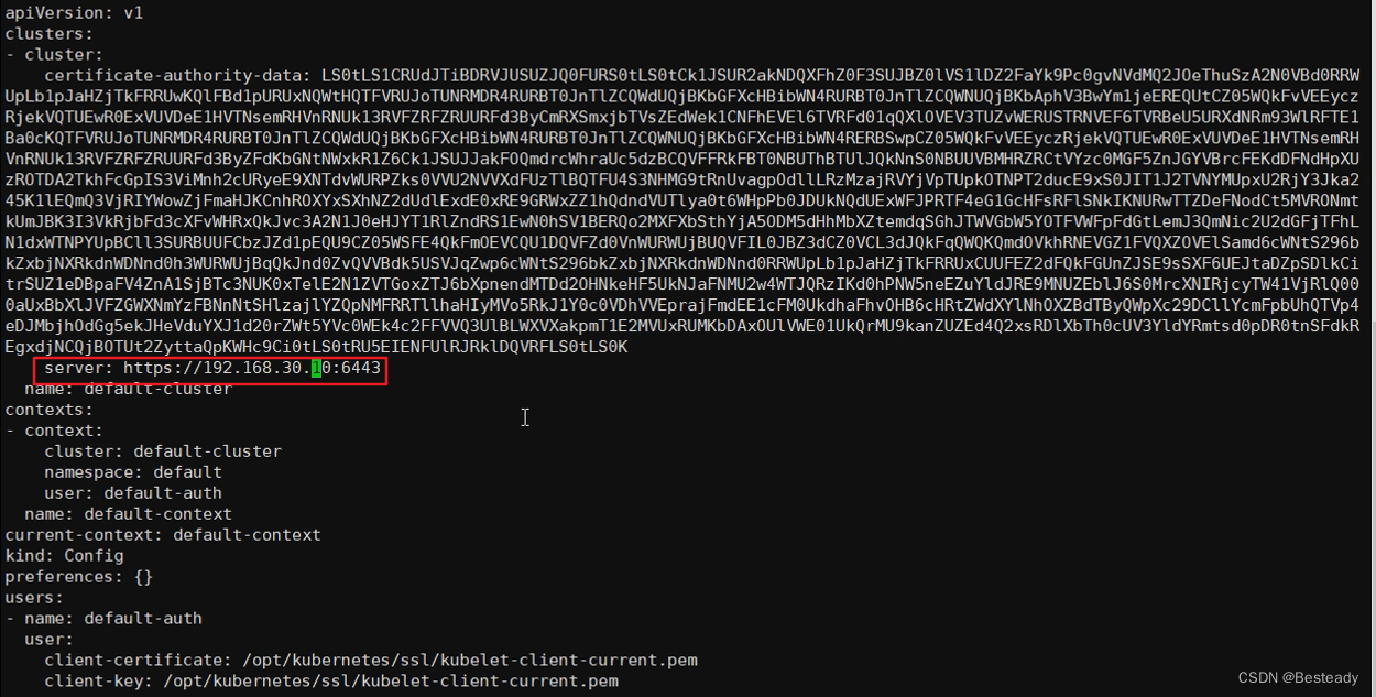 - 需要准备kubeconfig 文件,把kubectl 加入到集群中( 指定对接哪个apiserver,使用什么证书认证)