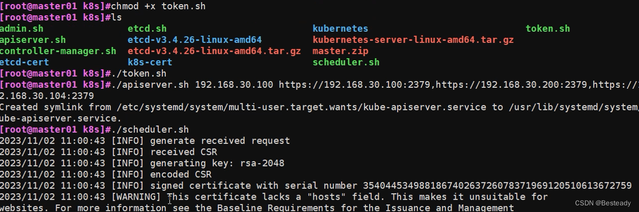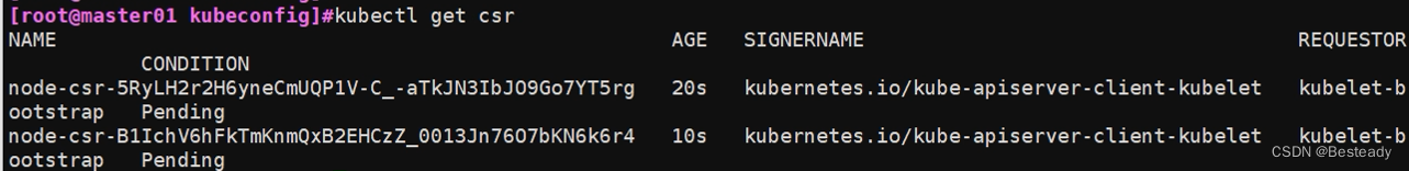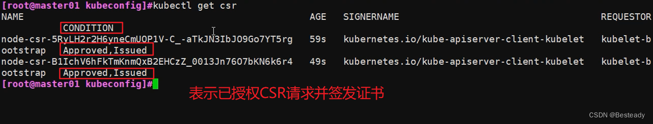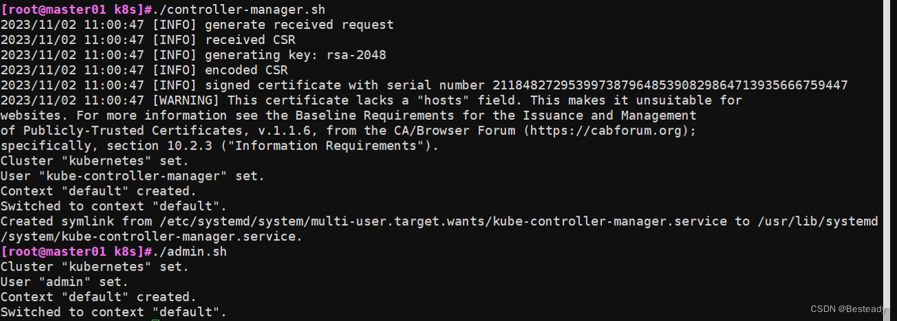 #--cluster-signing-cert-file/–-cluster-signing-key-file:自动为kubelet颁发证书>的CA,与apiserver保持一致。指定签名的CA机构根证书,用来签名为 TLS BootStrapping 创建的证书和私钥