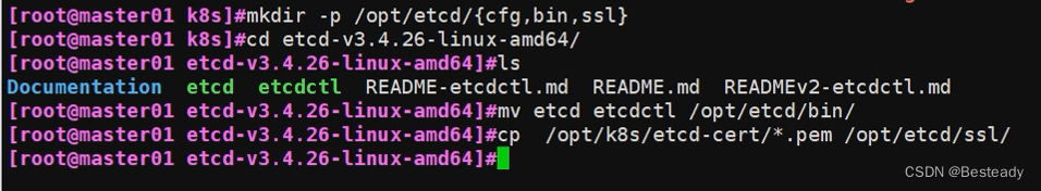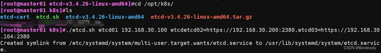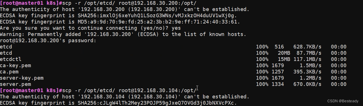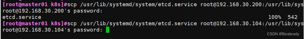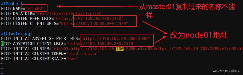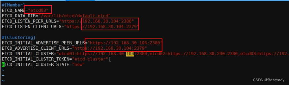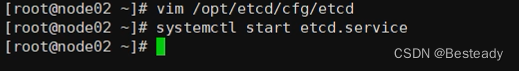 - 复制etcd工作目录和服务管理文件到另外几个节点上,修改etcd集群配置文件并启动etcd服务