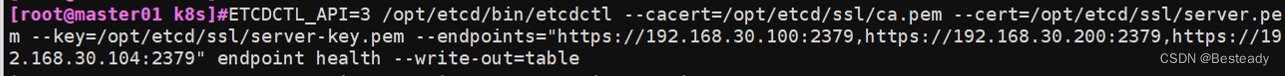 - 使用v3版本的接口执行etcdctl +证书选项+ (endpoint health | endpoint status | member list) 查看etcd 集群和节点状态