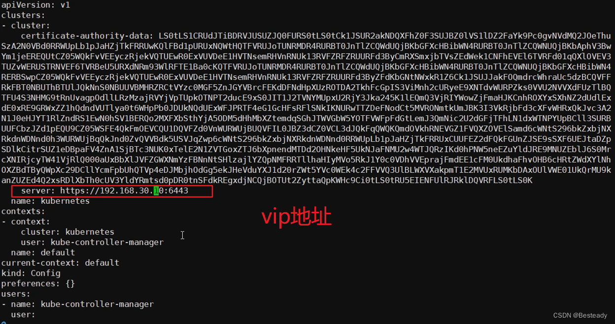 - kubectl的配置文件也要对接VIP或者当前节点的IP