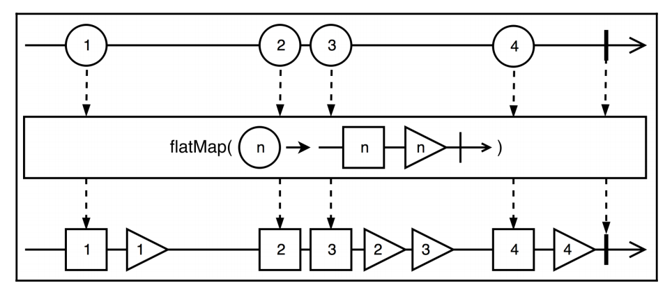 《Hands-On Reactive Programming in Spring 5》(Oleh Dokuka、Igor Lozynskyi著,即英文版《Spring响应式编程》)中,有一段我看过的解释flatMap最好的文字: