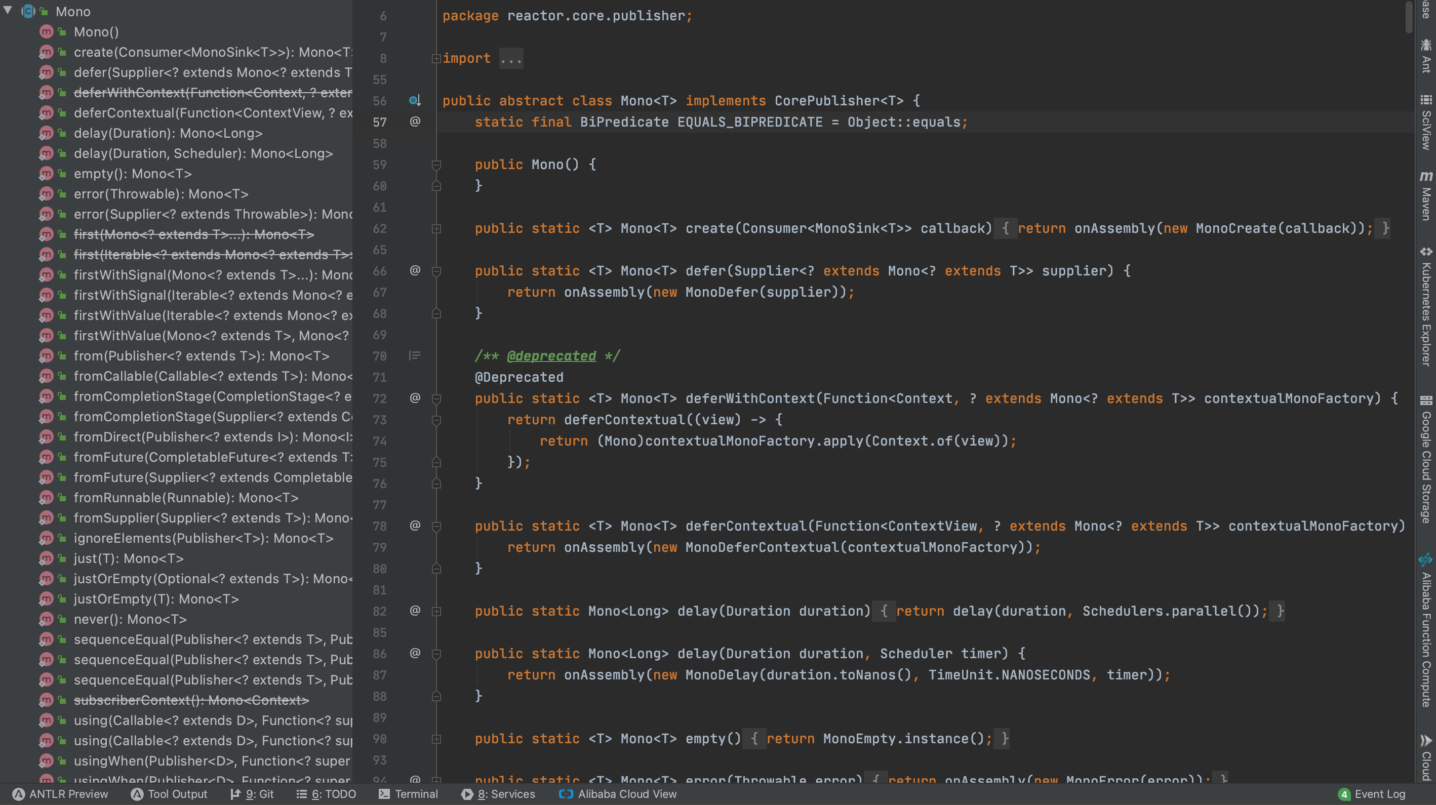 包含了一些与Flux 中相同的静态方法,如 just()、empty()、error()和 never()等。除了这些方法,Mono 还有一些特有的静态方法,比较常见的包括 delay()、justOrEmpty()等。