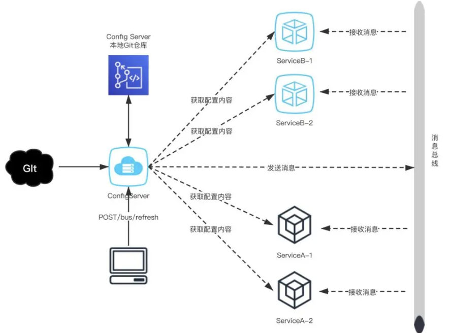 Bus,消息总线,配合Config仓库修改的一种Stream实现,用于广播消息。