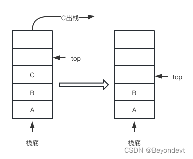 出栈时 top先将栈顶元素取出,然后再执行top--。实现的完整代码如下: