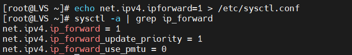 1> 在LVS上启用内核路由功能,并实现两张网卡可以互通,并且客户机和内网主机可以互通