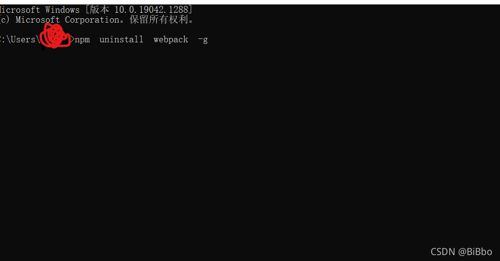 这时呢我们就要把webpack给卸载了,卸载我们只要在cmd中输入 npm uninstall webpack -g指令就行了如下图所示:
