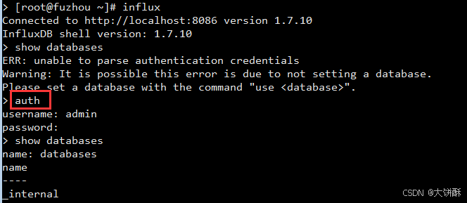 打开influxdb客户端,验证身份认证功能是否已打开