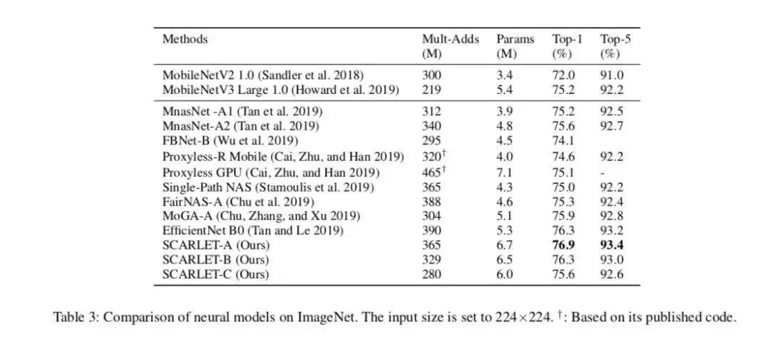 SCARLET系列是直接对标Google Brain提出的EfficientNet,在ImageNet 1k分类任务中达到76.9%的Top-1精度,目前是<390M FLOPs量级的SOTA。