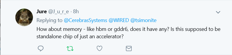 网友在twitter上的评论也是众说纷坛,有提问此芯片是否是加速器的独立芯片?
