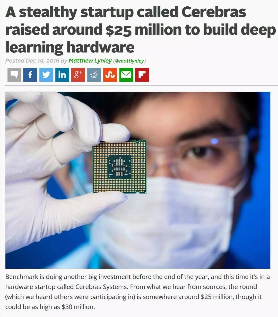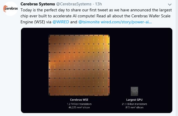 但是大部分AI公司拿到融资还是真正去做AI的,比如这家名叫Cerebras的公司,在2016年也获得2500万美元的投资用于开发深度学习硬件设备。