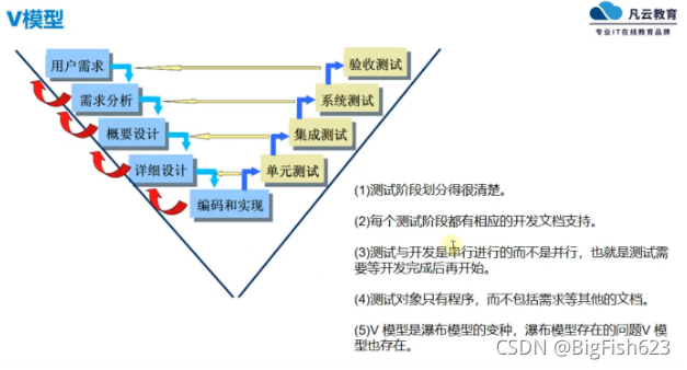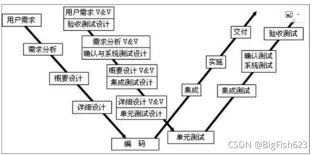 V模型:仍然需要等开发完后才进行测试只是进行了详细划分(没有解决风险问题),没有文档的测试环节。