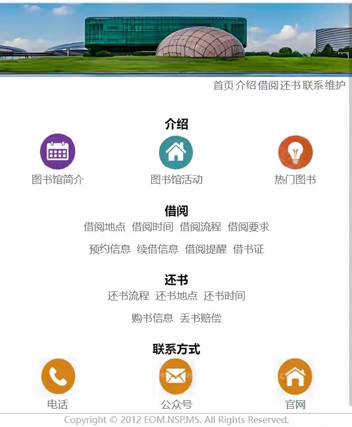 系统设计了金陵图书馆介绍、图书借阅、归还、联系方式等四大板块。