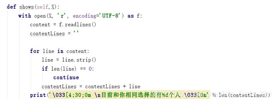 print('\033[4;30;0m \n目前和你相同选择的有%d个人 \033[0m' % len(contentLines))