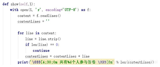 print('\033[4;30;0m 共有%d个人参与答卷 \033[0m' % len(contentLines))