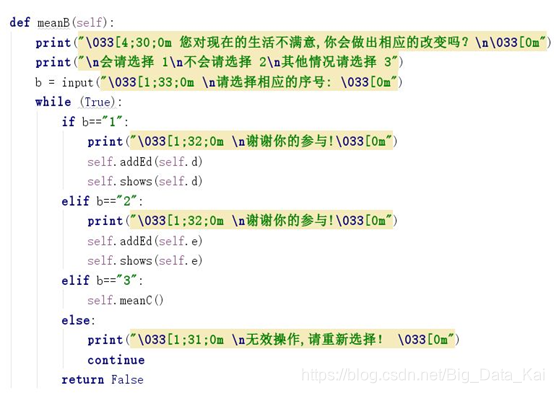 b = input("\033[1;33;0m \n请选择相应的序号: \033[0m")